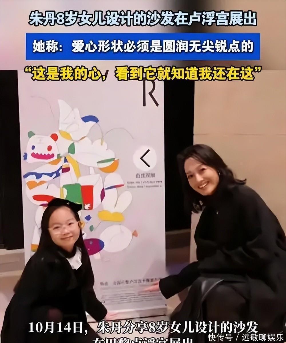 年仅8岁的她,设计了一款红色沙发,居然被法国艺术展选中,在法国卢浮宫展览,母女俩一起在全世界的观众面前露了脸。不得不说这小棉袄是真给妈妈争气,也让精心经营家庭的朱丹得到了价值肯定。